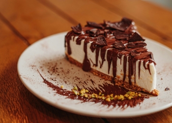 Cappuccino podawane z musem pistacjowym oraz kruszonymi pistacjami