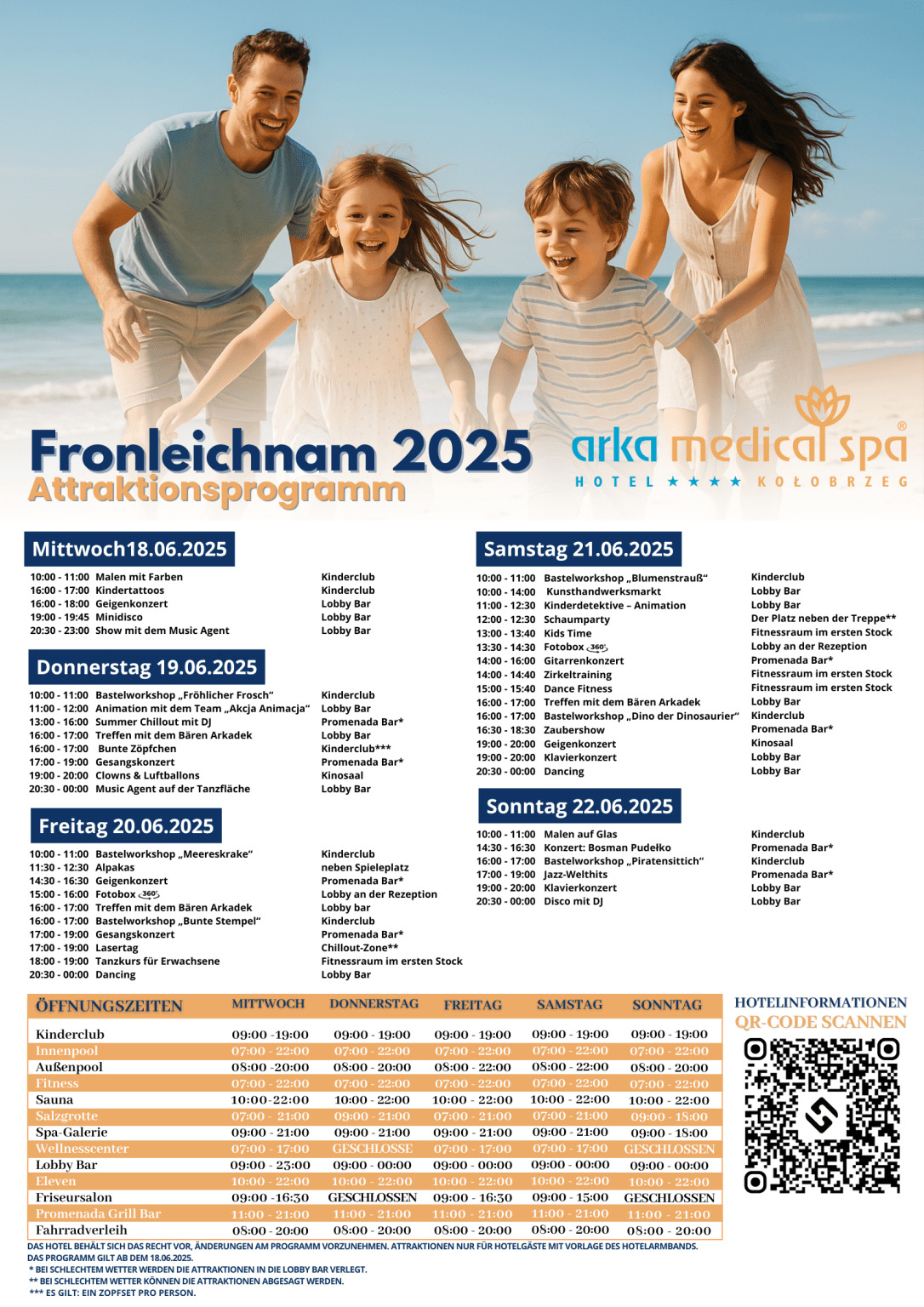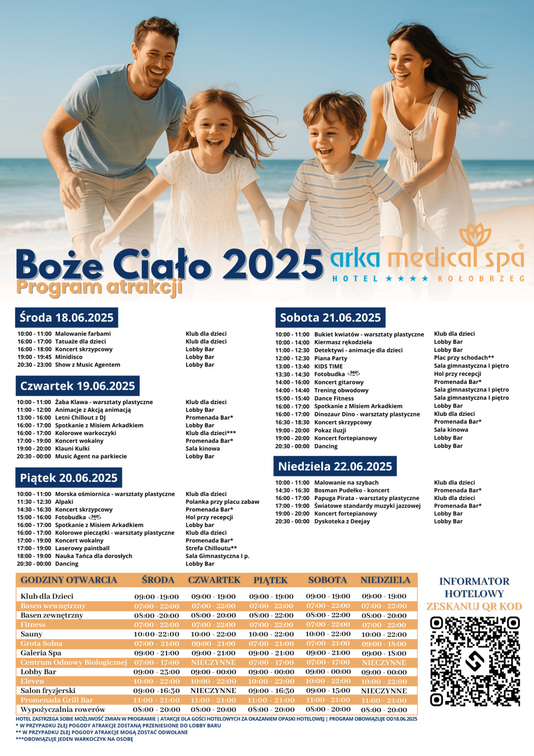 Wakacje 2025 w Arka Medical Spa - gotowe 😍Zajrzyjcie do naszego harmonogramu i zaplanujcie niezapomniany wypoczynek nad morzem 🌅